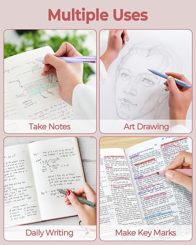 - 6 PCS Retractable Ballpoint Pens: This 4-in-1 multicolor ballpoint pen comes with black, blue, green, and red ink options. You can press to select the color you want for taking notes. As a nursing school essential, this pen allows you to create standout to-do lists in different colors with just one tool