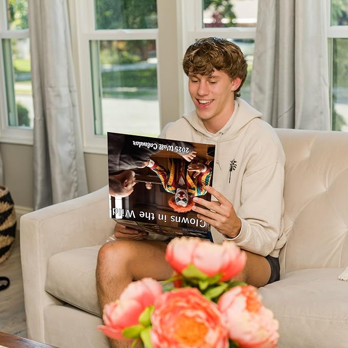 - GAG AND WHITE ELEPHANT GIFT: Whether you're searching for a conversation starter at your next gift exchange or simply want to add some humor to the office, the 2025 Clowns in the Wild Monthly Wall Calendar is sure to leave a lasting impression and is quite weird gift