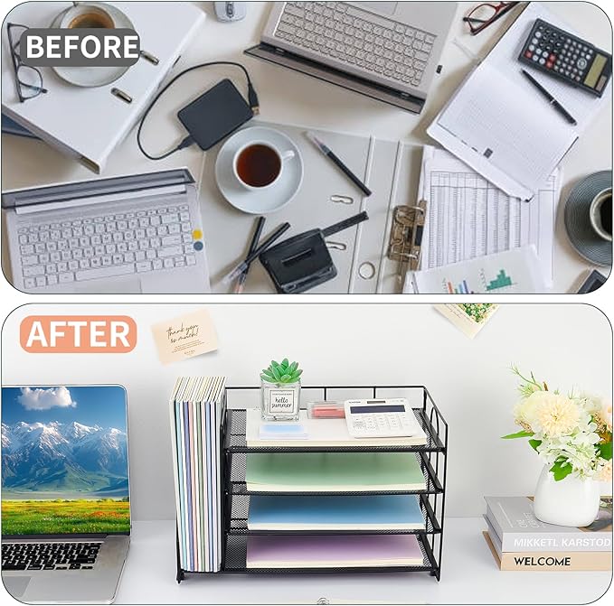 - 【Keep your desk clean】This space-saving paper organizer is the ideal solution for keeping your desk tidy and productive. Whether in an office, college dorm, or school classroom, it’s perfect for anyone needing efficient desk organization or classroom supplies