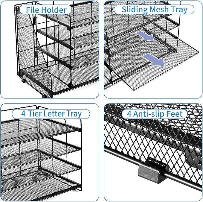 - 【Ideal Desk Organizers and Accessories】OPNICE newly releases the desktop file organizer! This office organization features 4-tier sliding mesh trays and a side vertical magazine file holder, providing ample space for all your office supplies and desk accessories while keeping your workspace neat and efficient