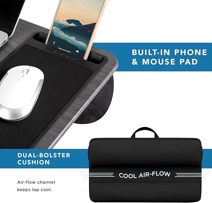 - Cool Comfort: Enjoy a stable surface with our lap desk's dual bolster cushion, designed for comfort and airflow, keeping your lap cool during extended use.