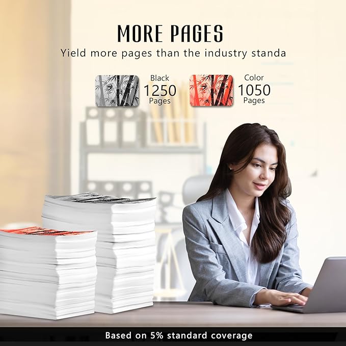 - --For HP 910 INK / hp 910xl ink cartridges combo pack--For hp 910xl ink more page yield: Each J2INK for hp printer ink 910 replacement for hp 910 910xl black and color combo pack for hp ink 910 color ( for hp 910 cyan, magenta, yellow ink cartridges | works with hp officejet 8010, 8020 series, hp officeje ) has 1,250 pages 910 XL black ink cartridges and 1,050 pages for each 910XL color ink cartridges at 5% coverage for A4 paper.