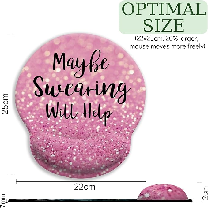 - Cute and Fun Design: Add a touch of cuteness and personality to your office or gaming setup with this adorable pink mouse pad. The funny and inspiring text "Maybe Swearing Will Help" adds a playful and light-hearted element to your workspace, making it a great conversation starter or a unique gift for friends or colleagues