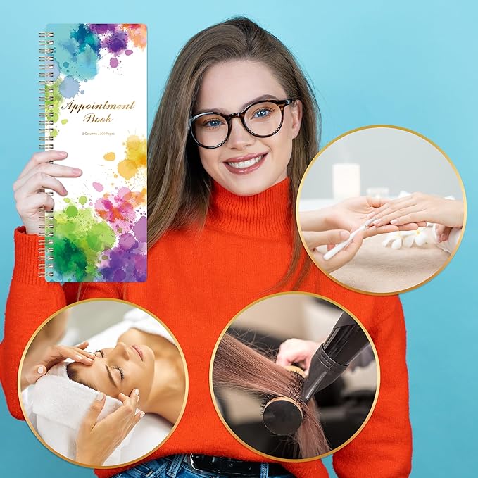 - Appointment Book - This salon appointment book is dedicated to help arrange hour schedule, improve your work efficiency. The appointment book measures at 11.5" x 4.7", convenient to record your appointments. The cover of the appointment book is colorful, add some colors to your life.