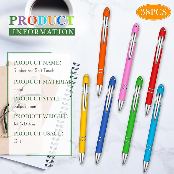 Zonon 38 Pieces Rubberized Ballpoint Pen with Stylus Tip Stylish Metal Pen Capactive Styli with Soft Rubberized Grip, Black Ink for Most Devices(Chic Colors)