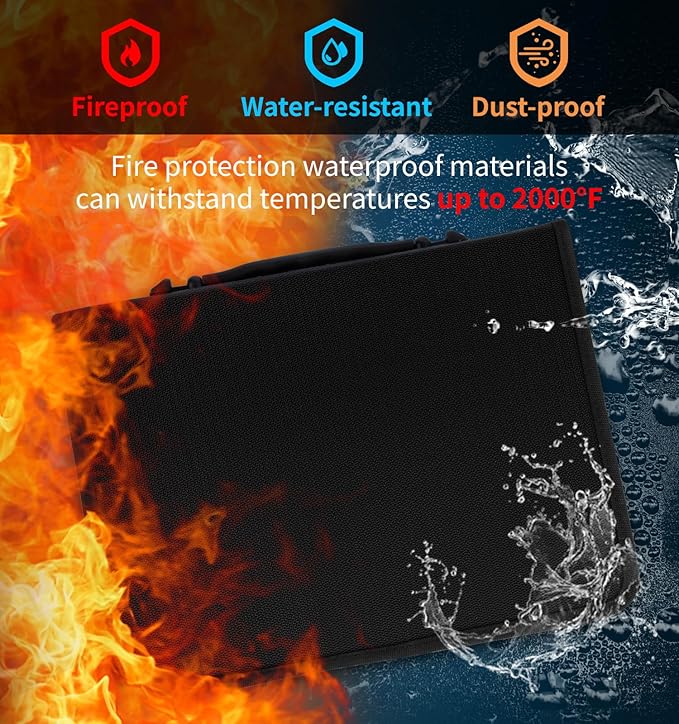 - 【Strong Security】Protect your valuable documents with the high-quality fireproof and water-resistant material of our file folder. Made from fireproof upgraded silicone fiberglass fabric, it can withstand temperatures up to 2000°f, ensuring your important papers stay safe from fire, spills, and other accidents. Trust in the reliability of our secure file organizer folders.