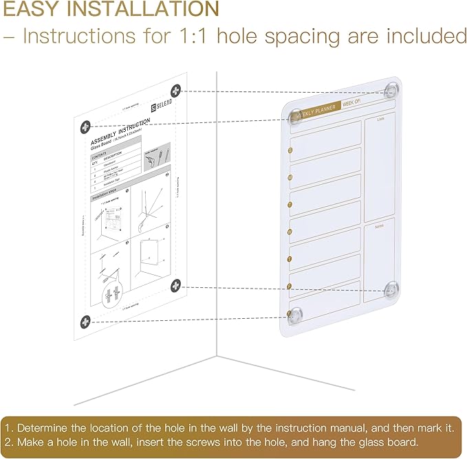 - 📌EASY INSTALLATION: We have attached the installation instructions for your reference. More importantly, our instructions are designed with 1:1 hole distance. You can determine the installation point in the wall through the holes in the instructions, then drill the holes, and finally install the board to the wall.
