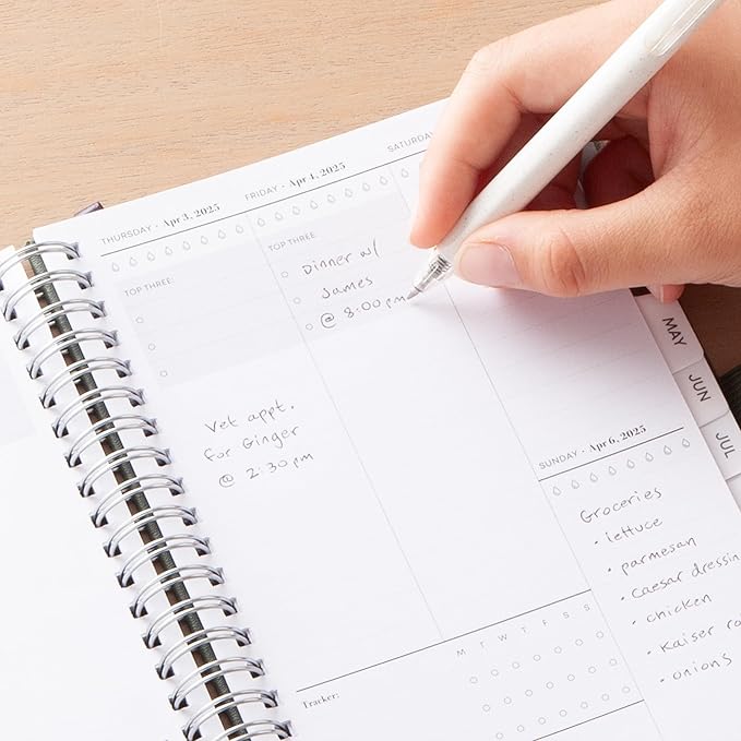 - Weekly view pages offer ample writing space for more detailed planning, allowing you to keep track of your top priorities, work and personal tasks, habit tracking and more