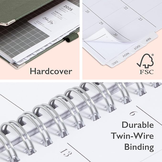 Blue Sky 2025 Weekly and Monthly Planner Calendar, January 2025 - December 2025, 5" x 8", Hardcover, Laminated Tabs, Wirebound, Storage Pocket, Slate Gray (Slate Gray- 2025, 5" x 8")