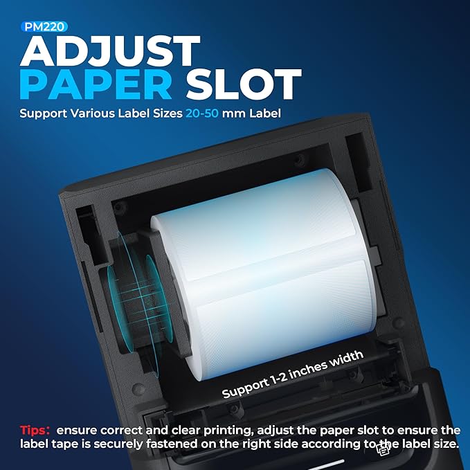 - Portable- 2 Inch PM220 label maker machine with tape compatible with smartphone & PC. Easily connect label printer to your smartphone in just 5 seconds for fast and convenient printing, label printer achieves convenient, smooth & fasts printing. Mini compact design, you can bring this portable label maker machine with tape to anywhere.(Note: charging adapter not included, not suitable for fast charging adapter.)