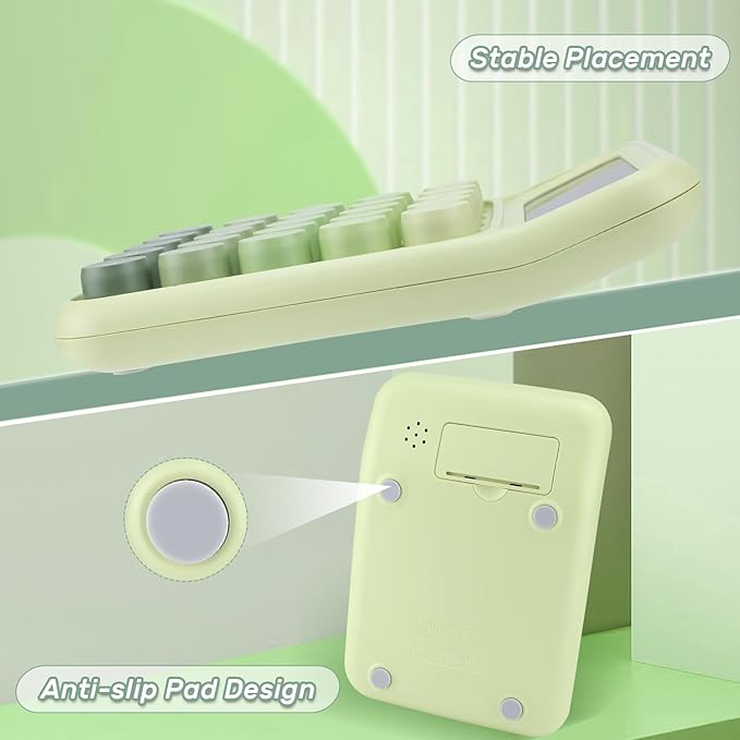 - 【Mechanical Switch Calculator】Imitating the knocking feel of a mechanical keyboard, the key operation is fast and accurate, bringing a pleasant experience. The touch of your fingers and the unique clicking sound are addictive. Large button, candy color.Large LCD screen,12-digit display, vertical back,15-degree angle for easy-to-read calculator.