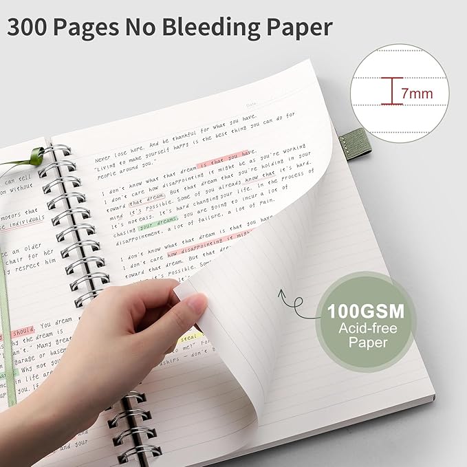 - 300 Pages Thick Notebook: EMSHOI college ruled notebook offers 300 pages (150 sheets) in A5 size (5.7" x 8.22"). Each features 7mm spacing, providing ample writing space, and consolidating all notes in one place