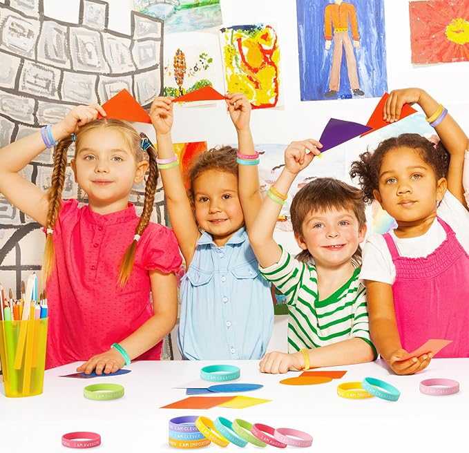 - Sending Your Love: the silicone wristbands are inspirational presents for your kids, friends, daughters, nieces, neighbors and classmates on birthday, graduation, first day of school, important festivals and big event celebrations, presenting your sincere blessings of keeping active attitudes.