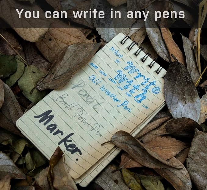 - Water resistant paper: 96 pages/ 48 sheets per notebook. This paper that won’ T turn to mush when wet and will repel water, sweat, grease, mud, and even survive the accidental laundry mishap and more. If GLORYFIRE notebook accidentally touches the water, The handwriting on the notebook is still very clear, and the paper can be dried and continue to use, Which is very suitable for use in the wild.