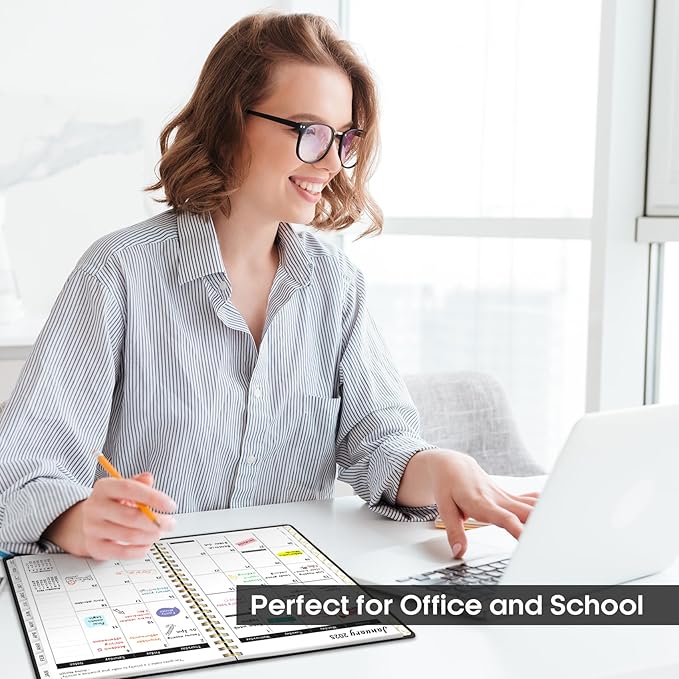 - Functionality Perfected, Style Exemplified: Revel in the embrace of 8.5" x 11" 2025 planner weekly and monthly, thick paper that exudes quality, and a hardcover cover adapting seamlessly to your lifestyle. Let monthly tabs and strong twin-wire binding elevate your planning journey, while the elastic band adds convenience for easy use. Contacts, a 2025 Yearly Overview, Reference Calendars, and 2025 Holidays enrich your journey.