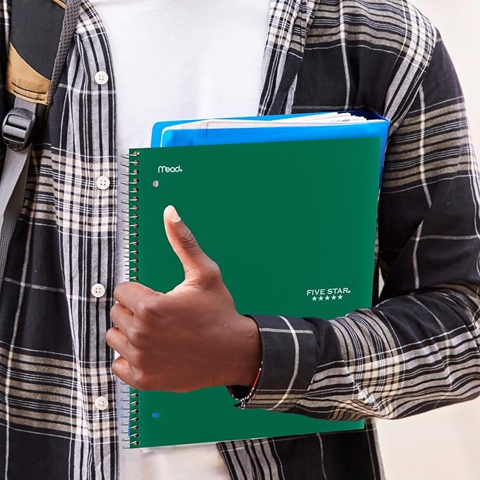 Five Star Spiral Notebook + Study App, 3 Subject, College Ruled Paper, Fights Ink Bleed, Water Resistant Cover, 8-1/2" x 11", 150 Sheets, Green (72067) (Pack of 2)