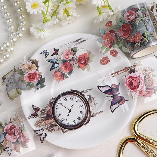 - Wide Application:Sitsink transparent PET tape roll is perfect for handmade art crafts. This vintage rose angel tape can be used to for scrapbook, journal book, photo albums, weekly planner, diaries, handmade cards, home decoration, bookmarks, envelopes, gift wrapping, storage box, letters, maps, gifts, album card etc.