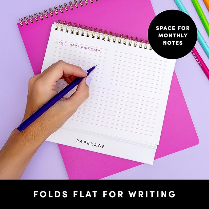 - SMALL DESK CALENDAR: Covering January 2025 - December 2025, this colorful monthly desktop calendar features a different vibrant color per month, three sticker sheets, a storage pocket, & spacious note pages for effortless planning.