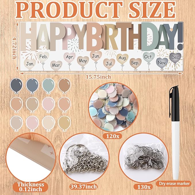 - Creativity and Organization Combined: you will receive 1 piece of birthday calendar wall hanging with 130 metal rings, 120 balloon tags and 1 dry erase marker; This classroom birthday calendar with tags isn't just a handy reminder of your loved ones' special days, but also a piece of decor that adds color and warmth to your living room or bedroom; You can enjoy creating the wall hanging with your family, making the practical calendar a fun, bonding exercise