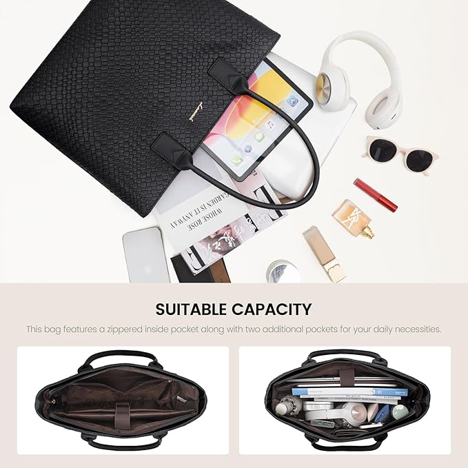 - Stylish Multi-Functionality: The exterior of this large-capacity laptop tote bag features a stylish woven press pattern, while the interior has thick foam padding to protect your laptop from bumps. Ideal for work, college, cafes, shopping, parties, traveling, and more, it can be used as a women's briefcase, teacher's handbag, computer tote, or work bag.