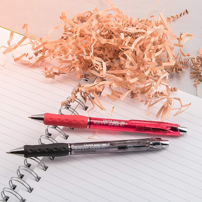 Pentel RSVP Super RT Ballpoint Pen, (0.7mm) Fine Line, Black Ink, 2-Pk - BX477BP2A (Pack of 2)