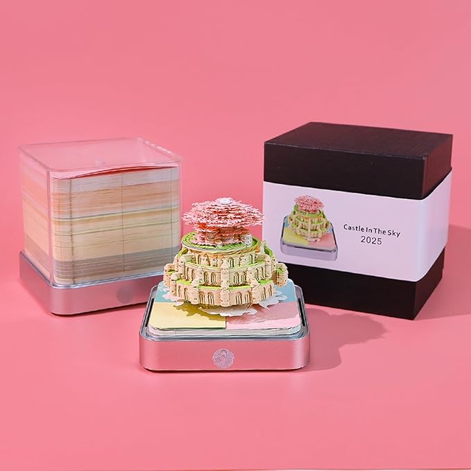 Time Piece Calendar,3D Art Calendar Memo Pad 2025 Creative Desk Calendar with Light,Castle in Sky Tear Away Paper Carving 3D Memo Pad Art Notepad Christmas Gift