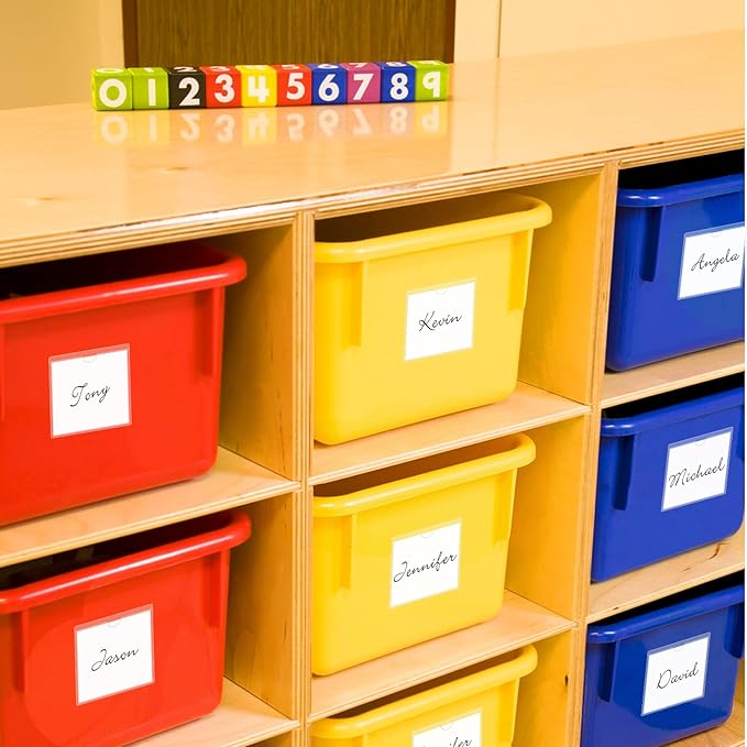 - Good Adhesive: No need for glue, the backing of label for storage bins is self-adhesive and can be easily attached to smooth surfaces such as plastic, glass, wood, metal, paper. It is not easy to leave adhesive marks when peeling off