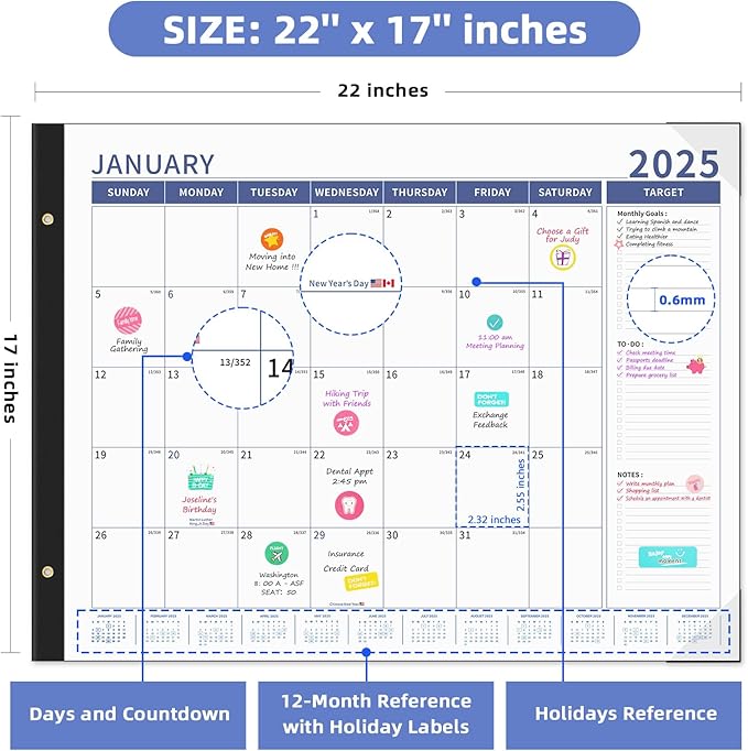 - 【22" x 17" Large Calendar】 Our office desk calendar, designed with productivity in mind, offers an expansive writing area that allows you to effortlessly schedule, plan, and keep track of crucial dates, deadlines, and holidays. Featuring prominently displayed holiday markings and convenient 12-month referencing calendars, this calendar ensures that you can effortlessly visualize and manage your daily, weekly, and monthly schedule with utmost ease and efficiency.