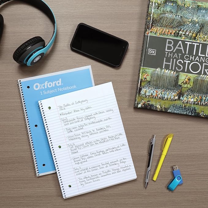 Oxford 1-Subject Notebooks, Notebooks for School, 8 x 10.5 Inches, College Rule, 70 Sheets, Assorted Primary Colors, 3 Pack, Colors May Vary (1006792)