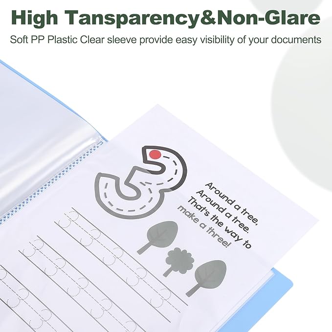 - {Sturdy Cover&Soft Sleeves}Crafted from durable and lightweight polypropylene(PP Plastic), ensuring long-lasting protection for your documents. It is acid-free, non-stick, non-glare, and water-proof, safeguarding your important papers against environmental elements. The thickened and sturdy cover prevents cracking and protects the clear sleeves from damage. Whether for transport or storage, this portfolio keeps your vital documents safe and secure.