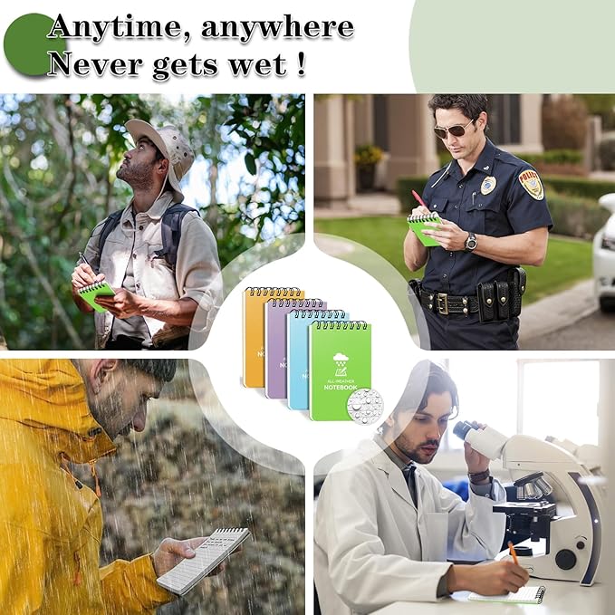 - 100% Waterproof Notebook: 4 Pack waterproof notepad, 100 pages / 50 sheets per waterproof notepad to meet your use. Our all weather notebook can withstand water, mud, and even laundry accidents won’t turn to mush