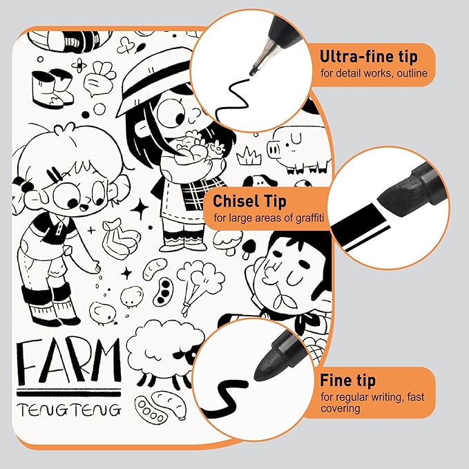 - ✏WORKS ON ANYTHING: Used on paper, poster, stone, wood, clothes, canvas, plastic, metal, ceramics, glass and other surfaces. Pure black colors are good for writing, painting, DIY, marking and doodling, etc.