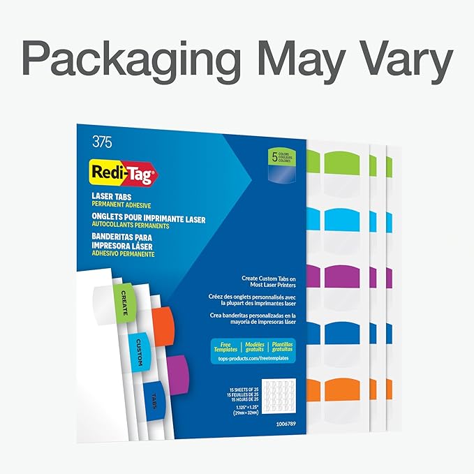 - You get 375 laser tabs in 5 assorted tropical colors: purple, green, blue, dark blue and orange; templates available online; see packaging for details