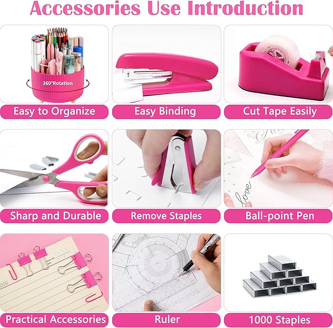 - 【Perfect Gift】Our hot pink office supplies is rich, suitable for students, teachers, office workers, female workers, a practical gift choice for pink lovers, you can give it to your family and friends as holiday Christmas gifts, birthday gifts, party gifts and special days gifts