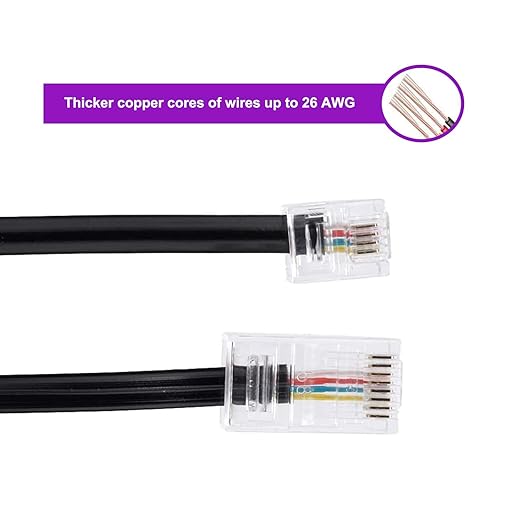 - 【COMMUNICATION】: Phone Jack to Ethernet Cable Adapter 15FT, Signal transmission designed. Be made of OFC (Oxygen Free Copper) Wire of 26AWG, which is much better than ordinary Copper-clad-Steel telephone cord, and the plugs coating plated with gold, that is to make sure the great connection and conservation.