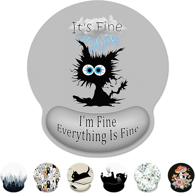 Ergonomic Mouse Pad with Wrist Support,Lightning Black Cat Mouse Pad with Wrist Rest,Relieve Wrist Pain Mousepad Non-Slip Rubber Base,Cute Mouse Pads for Desk,Computers,Laptop,Office,Home,Accessories