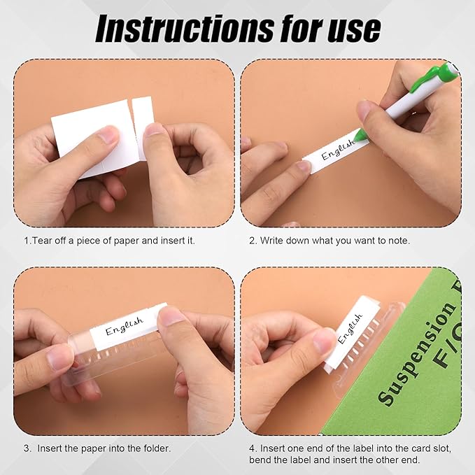 - Easy to Use: You only need to tear off a piece of paper insert, write down what you want to record, and then put it into the vertical slot of the folder label, and then insert the label into the hanging file.