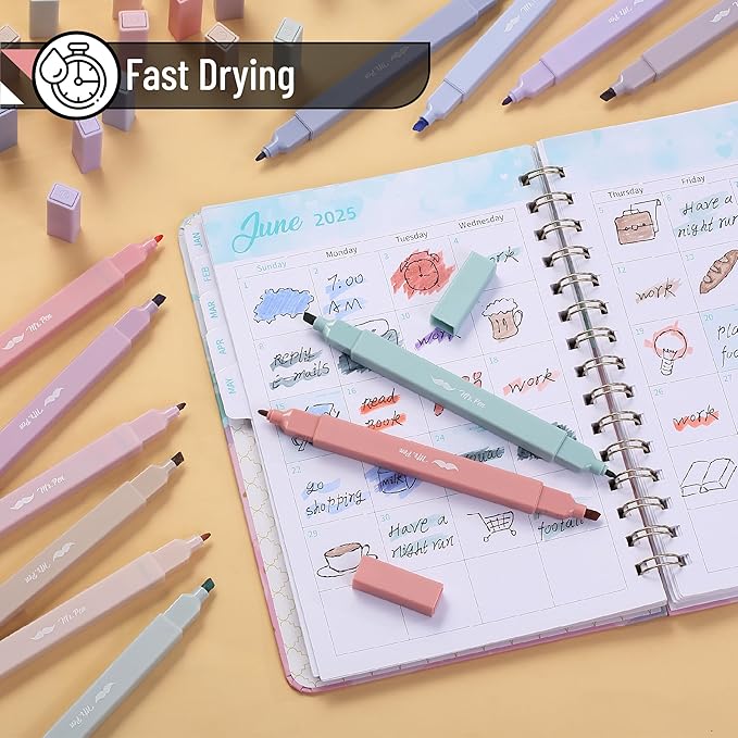 Mr. Pen- Dual Tip Aesthetic Highlighters, 12 Pack, Chisel & Fine Tips, Joyful Earth, Cute Highlighters Assorted Colors, Cute Highlighters for School Highlighters, Highlighter Set, Pastel Highlighters