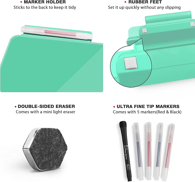 - Ideal Giving: The board, measures 8 x 6 Inches and comes with 5 markers, a double-sided eraser and an adhesive marker holder, it is a perfect present for coworkers and friends on a holiday like Christmas