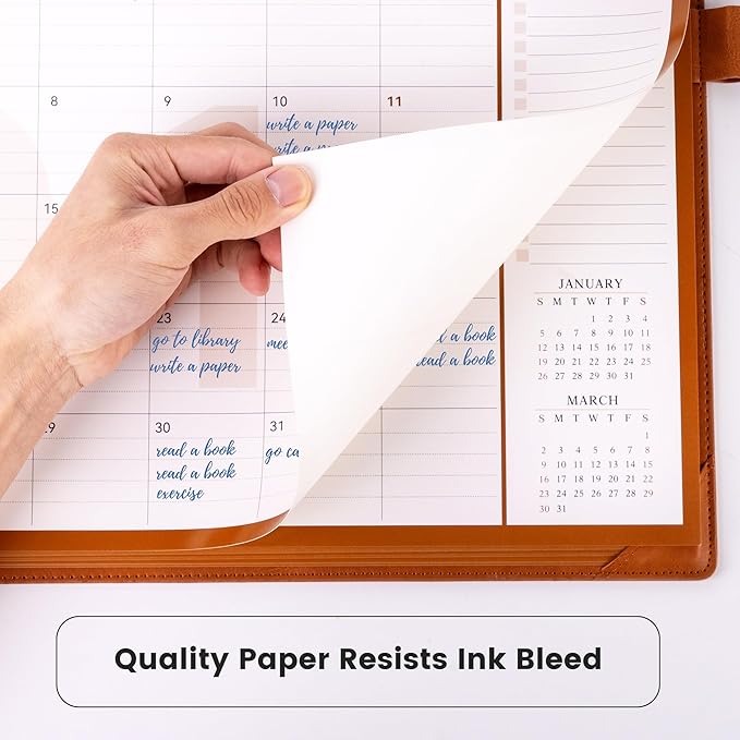 - Premium Thick Paper: Thick paper is the hallmark of our premium calendars for smooth writing, effectively preventing feathering and ink leaks, and fits most pens. Premium paper ensures smooth writing and clear content, providing you with a pleasant planning experience
