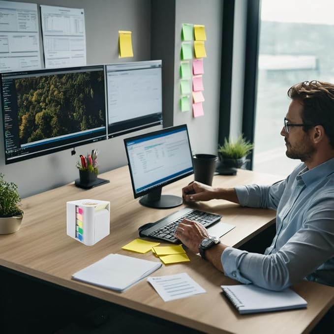- 5-in-1 Design: The sticky note sticker holder adopts a 5-in-1 design, which integrates 4 types of note stickers and 1 magnetic absorber case. The fine teeth on the edges allow you to easily remove sticky notes from different directions; The magnetic design on the top securely attaches a paper clip or gadget, allowing you to work on your files on the go