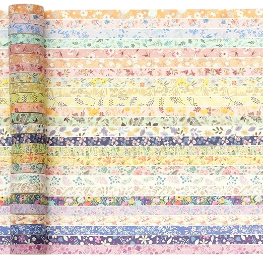 YUBBAEX Flowers Washi Tape Pack 50 Rolls Floral Printed Masking Tape Plants Decorative for Arts, DIY Crafts, Journal Supplies, Planners, Scrapbook, Card/Gift Wrapping