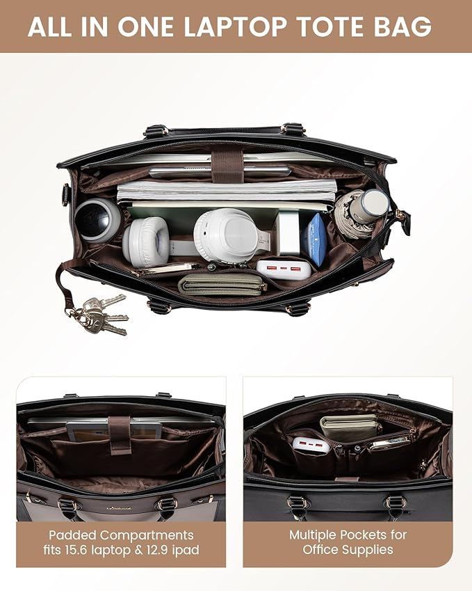 - 【Multiple Pocket Tote Bag】Features a dedicated padded laptop compartment for laptops up to 15.6 inches, an iPad pocket, a main compartment for daily essentials, side pockets for water bottles, tissues, or umbrellas.This tote bag for women keeps your belongings organized and easy to find!
