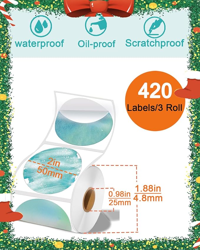 - [Specifications]: Wonlabel Round thermal labels with the size: 2" (420 Labels/3 Roll, 4 Color),Paper tube diameter:0.98"(25mm)