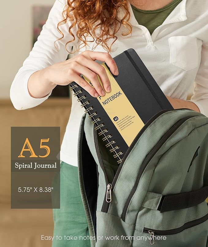 Graph Spiral Journal Notebook, A5 Hardcover Spiral Journals for Women Men, 100 GSM Graph Paper Notebooks, 150 Pages Spiral Bound Grid Notebook for Writing Note Taking Work 5.75" x 8.38" Black