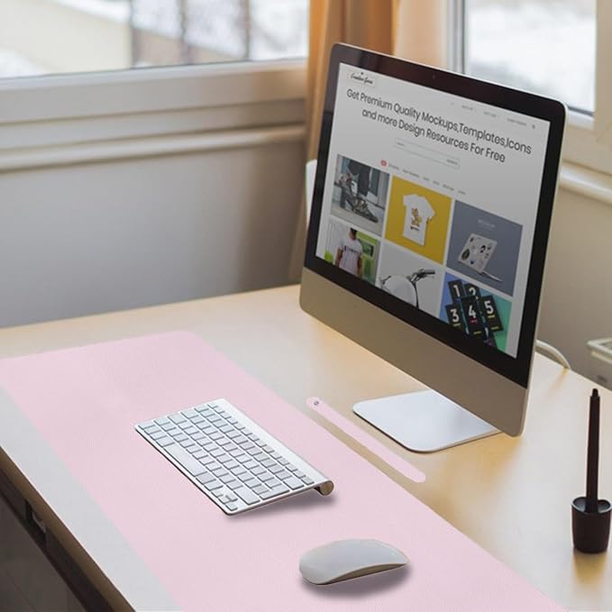 Boutilon Leather Mouse Pad,Extended Desk Pad for Keyboard and Mouse Non-Slip Study Desk Writing Pad Desktop Protector for Home Office Accessories,35"x 17"(L-Light Pink)