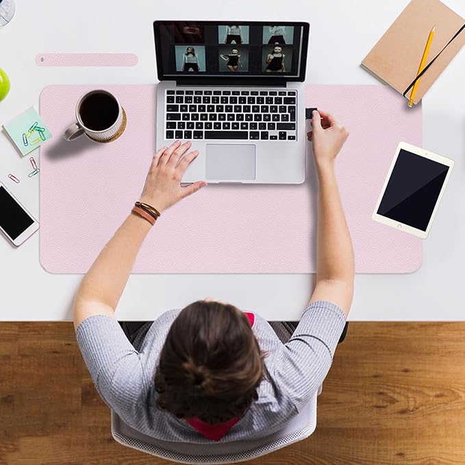 - 【Non-Slip Design】The non-slip backing leather adds stability during everyday use.It can firmly grips the desktop,keeps the pad from sliding. The desk pad can be used as study writing pad keyboard pad or computer table protector, friendly for student daily using,comfortable resting surface for your wrists while typing and using the mouse.