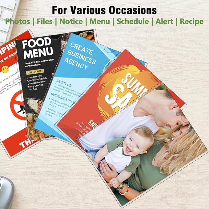 - ✔ 【Durable & Flexible】 Made from thick plastic, this clear paper holder is both strong and flexible,offering clarity. Its lightweight and ultra-thin design seamlessly adheres to posters, ensuring papers stay securely in place to prevent slipping.