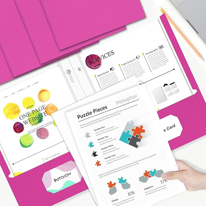 - Durability and Protection: Made from high-quality paper material and use heat press molding technology, our folders with pockets are scratch resistant and built to last. They offer excellent protection against wear and tear, ensuring that your documents remain in pristine condition.