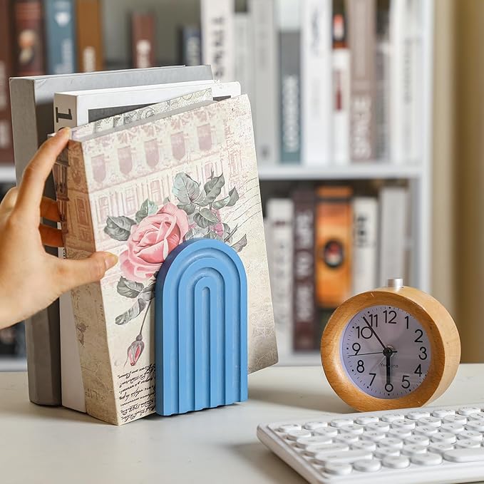 - Bohemian and Minimalist Design: our non-slip bookends are designed with rainbow shapes and 4 beautiful color systems, each with exquisite carvings, which can add elegance, simplicity and natural style to your bookshelf, decorate your office and study room